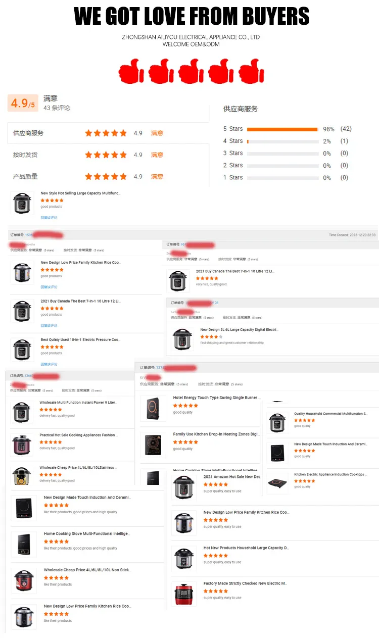 | Key Functions | 1. 24 hours reservation 2. Taste & texture selection 3. Open cover safety protection 4. Adjustable working pressure 5. Thermal insulation probe (12h preservation) 6. Multi-cook: Rice, cake, steamed fish, stew soup, meat, porridge. |